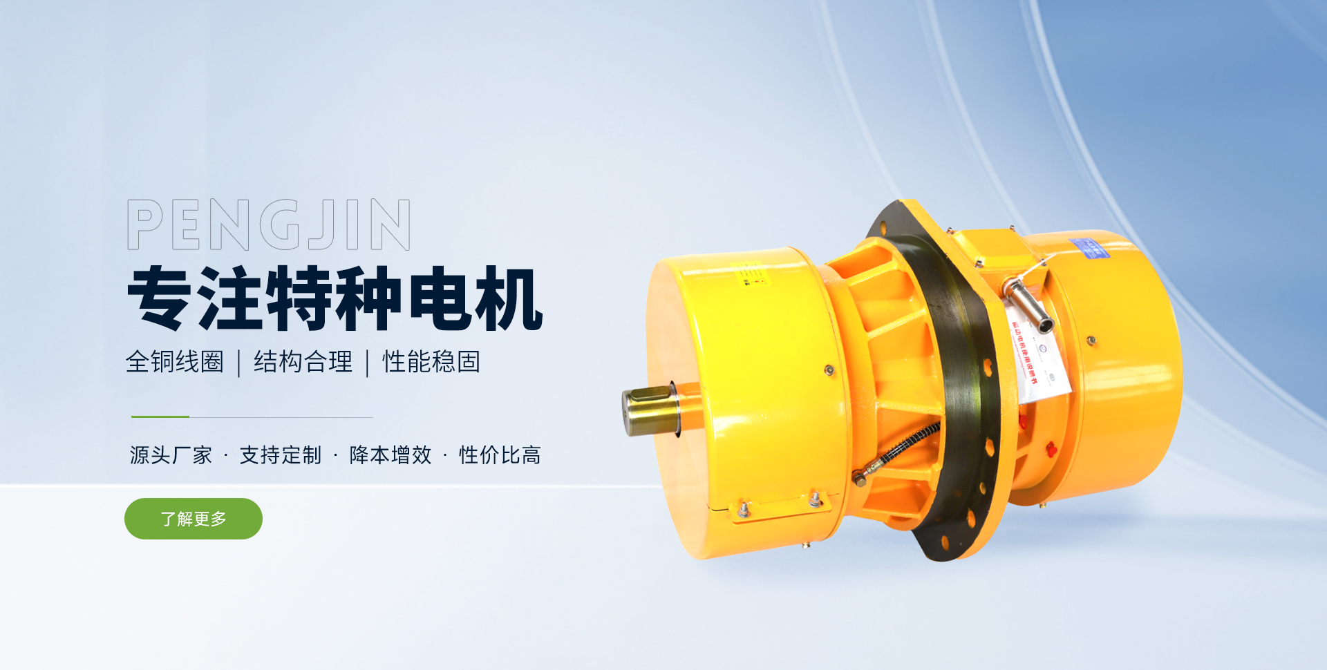 Company Profile新鄉市鵬錦特種電機有限公司是生產各類特種電機的制造商?! 」疚挥谥性貐^的河南省新鄉市關堤創業園區。緊鄰107國道,距京珠高速公路新鄉站僅3公里,交通極為便利。公司在工業園區內的標準化廠房建有規范的電機制造、組裝、檢測生產流水線。同時配備了軸承裝配,數控繞線,真空絕緣處理,轉子動平衡調試,數控車床,電機出廠試驗微機處理系統等的工藝裝備和制造檢測設備。目前公司生產的所有產品絕緣等級均為F級以上,提升了產品品質,有力貫徹了“在持續的質量保證體系下,始終提供客戶滿意的產品和服務”的公司產品服務方針。公司產品質量穩定,歷年通過,行業、省市技術監督局的產品質量檢測?! 」颈小翱萍记笙?,產品求實,管理求真,服務求誠”的經營理念,努力打造支意識靠前,技能高的高素質團隊;長期與國內行業科研所和部分院校保持良好的合作關系,了解掌握行業動態;在技術研究方面投入大量資金,堅持不地研制、引進國內外各類先進適用的新型產品和制作工藝;針對各行業客戶的具體要求,量身設計,制造出工況適用,性能穩定的專用電機?! ∥覀兊漠a品廣泛應用于動力、控制、冶金、起重、鑄造、造紙、煤炭、醫藥、食品、礦山、線纜、印刷、包裝、環保工程及新能源等各領域的不同工業機械中,受到了客戶的認可和好評。